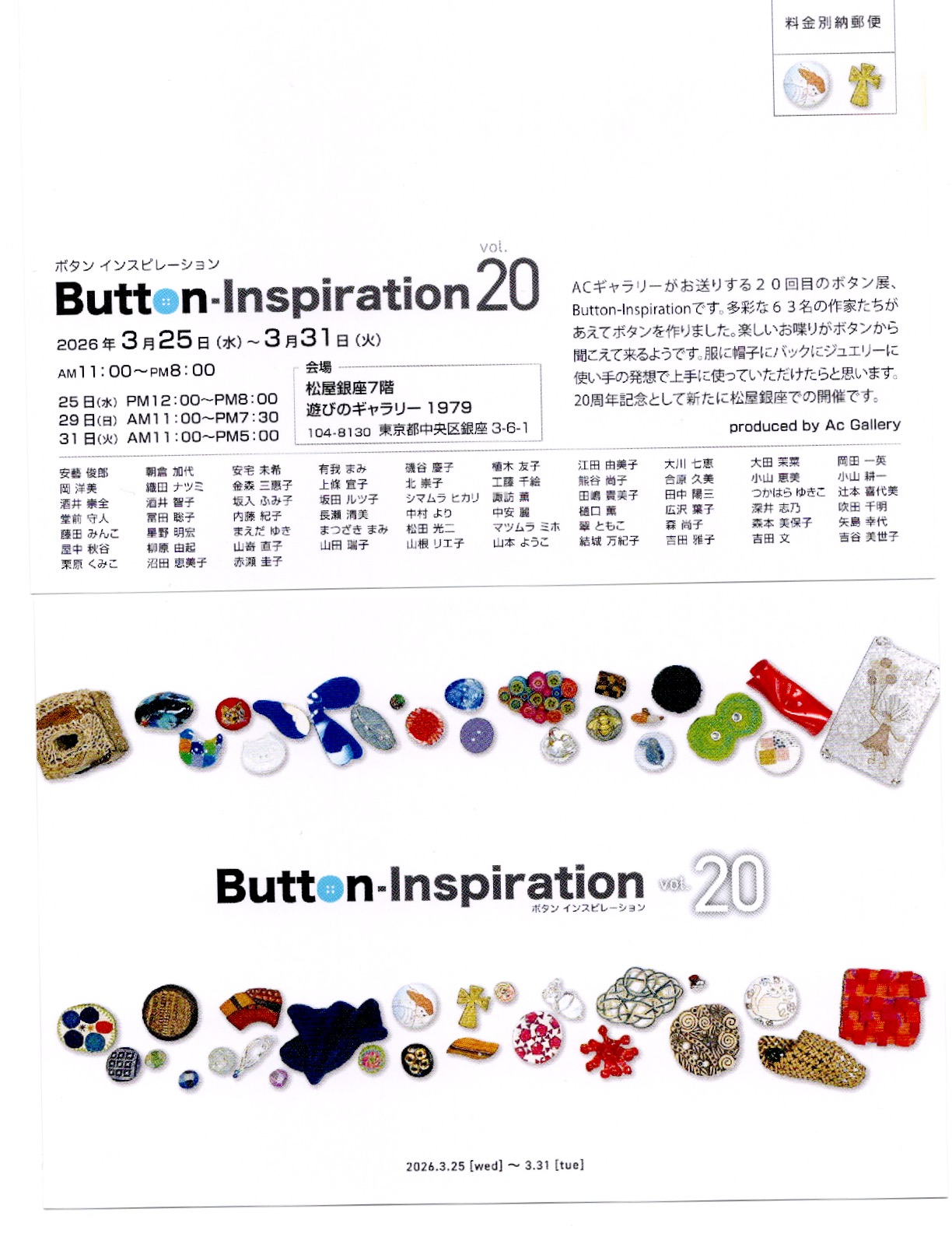 内容:ACギャラリーで長年行われていたボタン展が銀座の松屋で開催されます。バスケタリーからは吉田雅子さんが出品します。