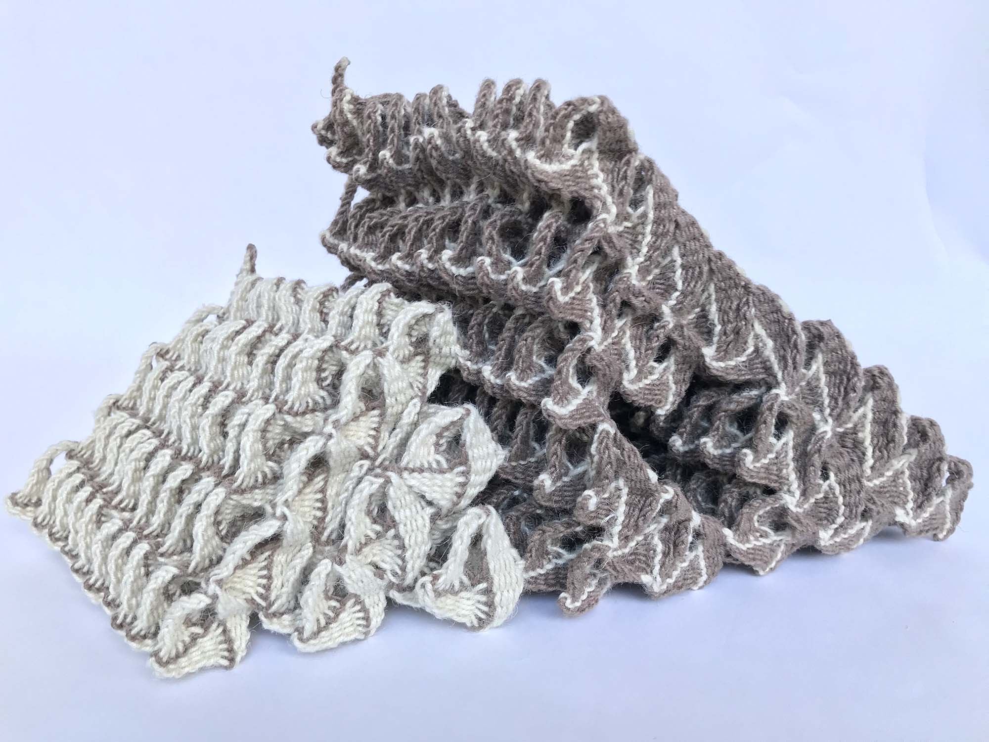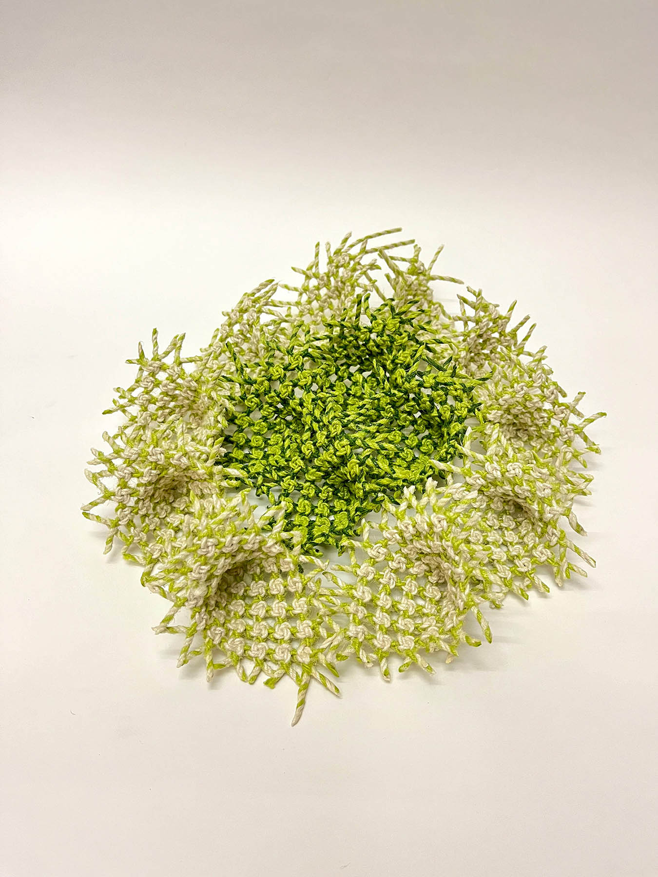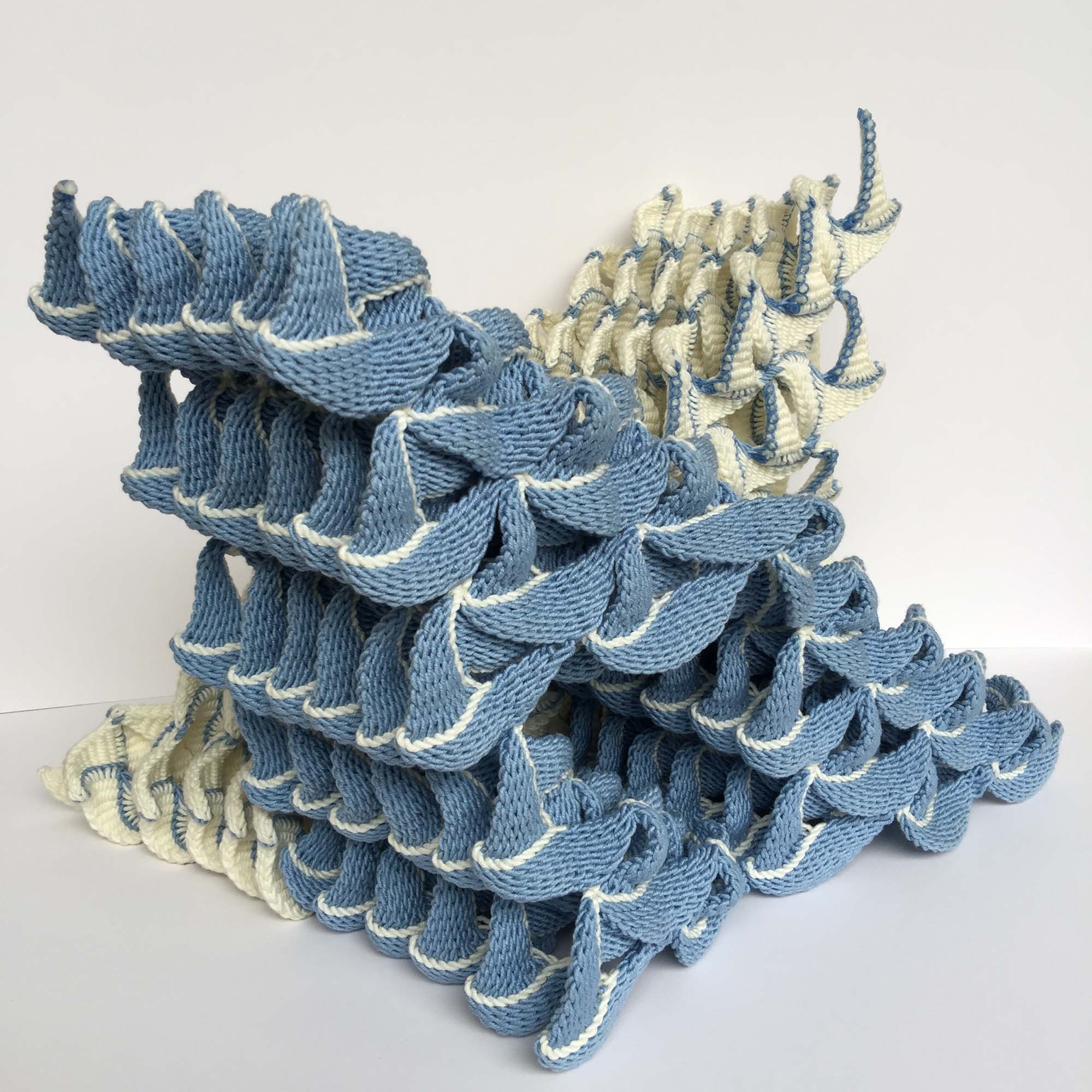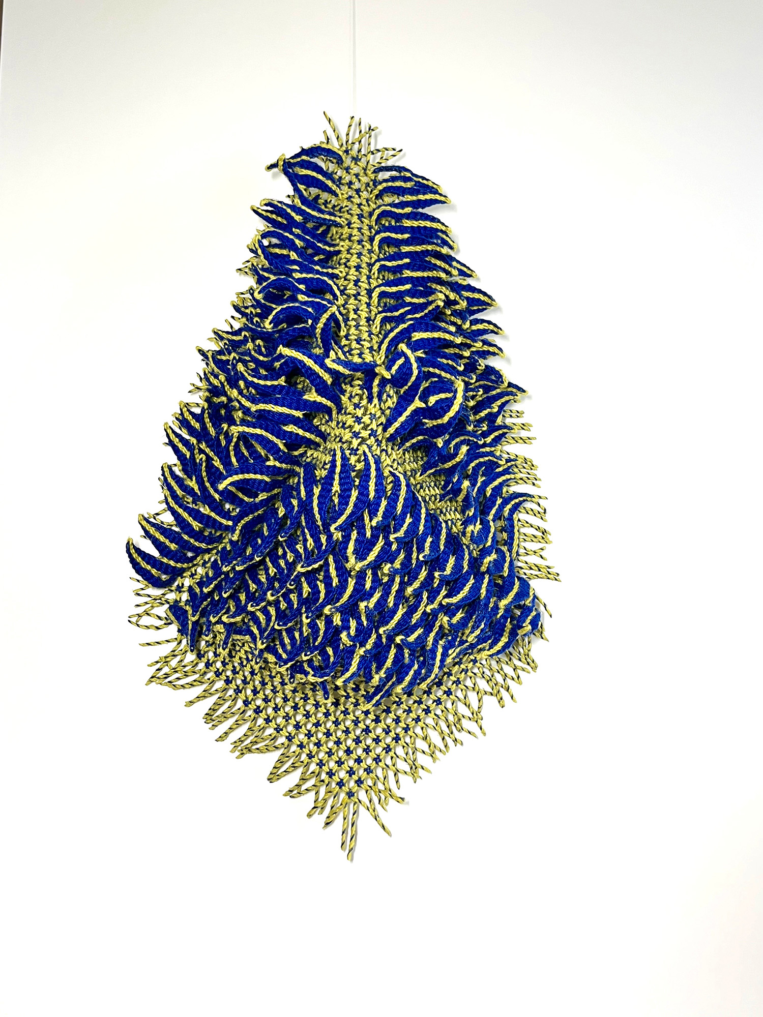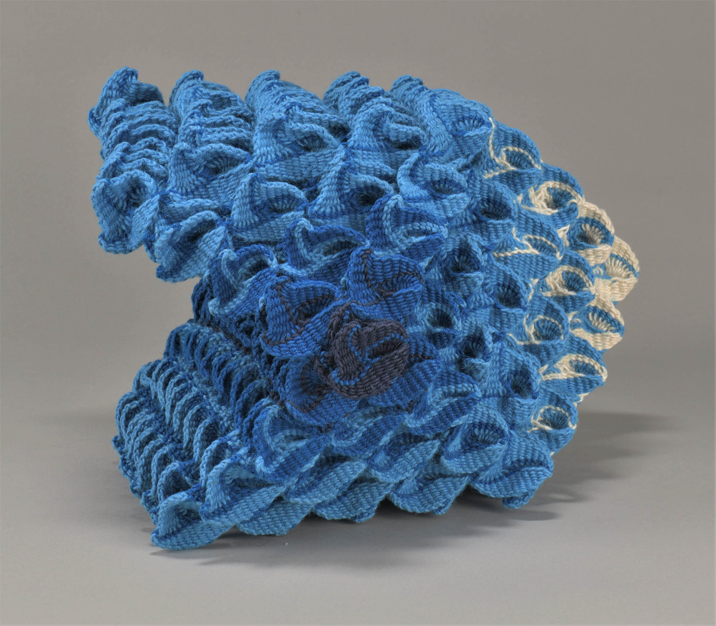 『 インド北西部やパキスタンの放牧民がラクダの腹帯に用いるプライ・スプリット技法(Ply Split)による作品を制作しています。 「結晶Ⅹ」は、動きのあるかたちをテーマにしました。 色とかたちの調和を意識し、見る角度によって様々なかたちに見えるように制作しました。 』 resume