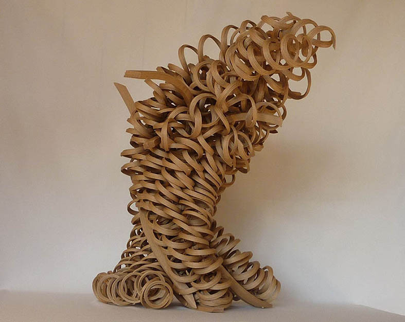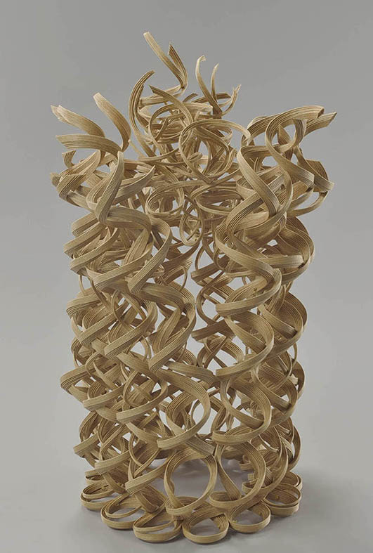 そのひとつが スパイラルです。材料を3方向から組む加算工程による成形を試みた。想像つかない形が現れた。